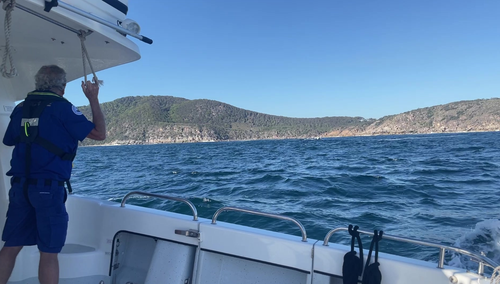Restos mortais foram encontrados após a suspensão da busca por Astin Gerstil. (SMH)Marine Rescue, polícia e Surf Live Saving NSW estiveram envolvidos na busca. (Resgate Marítimo NSW)