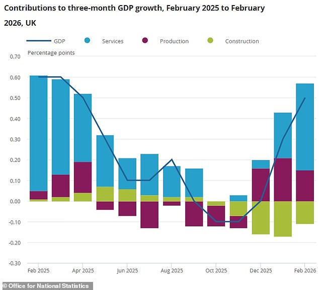O PIB subiu 0,5% ao longo do mês, a expansão mais rápida em mais de dois anos e significativamente superior ao previsto pelos analistas.