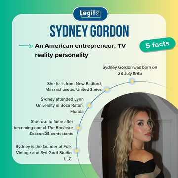 - Quem é Sydney Gordon do The Bachelor? Ela é empresária, fotógrafa e personalidade da TV de reality show.