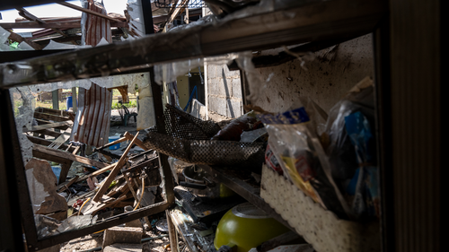 Uma casa danificada por um bombardeio em Surin, Tailândia. (Sirachai Arunrugstichai/Getty Images)