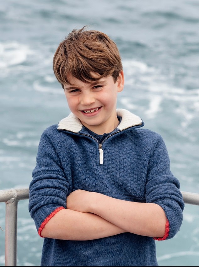 A doce foto, que foi compartilhada nas contas de mídia social Kensington Royal de Kate e William, tinha a legenda: ‘Desejando ao Príncipe Louis um feliz 7º aniversário!’