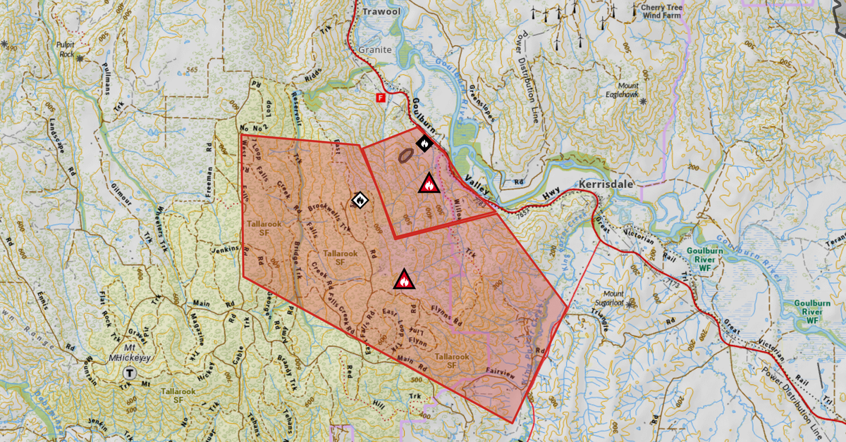 Na última meia hora, os residentes de Kerrisdale, Tallarook e Trawool foram instados a partir imediatamente antes que as condições se tornassem muito perigosas.
