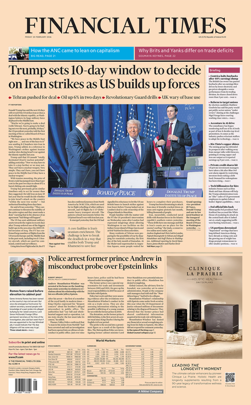 Andrew apareceu na primeira página do Financial Times, mas Donald Trump levou a melhor. (Tempos Financeiros)