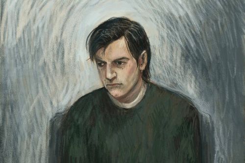 Um esboço judicial de Silvagni de 12 de dezembro durante sua aparição via link de vídeo. (Nove)