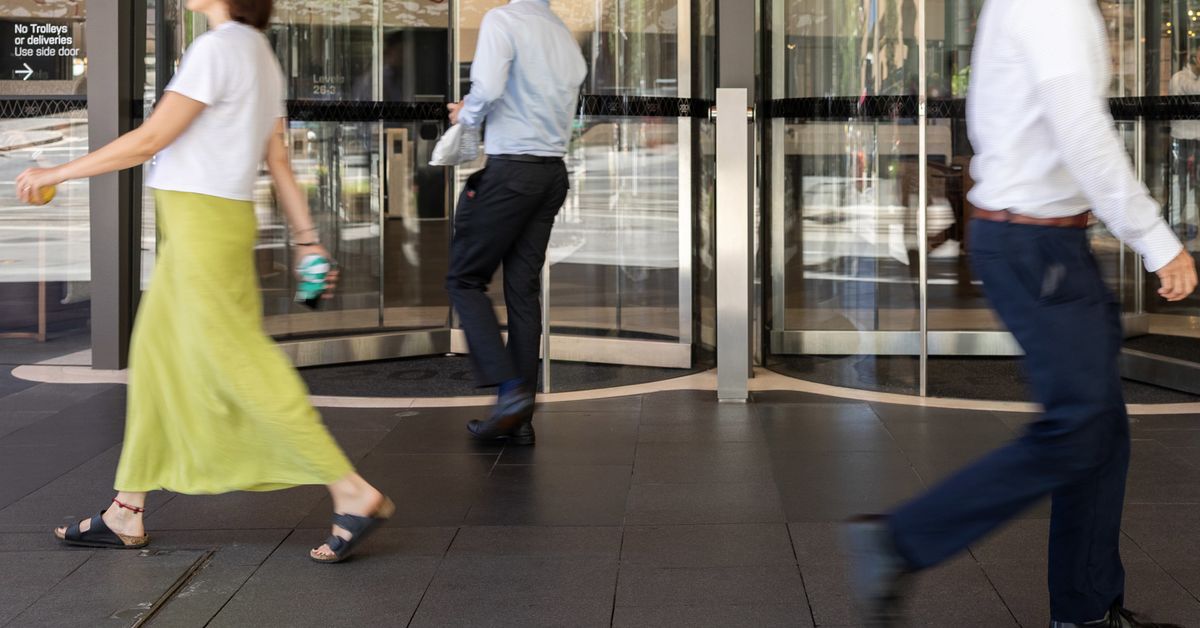 Cenas de rua genéricas em Sydney CBD. EY, Ernst & Young, empresas de contabilidade, trabalhadores de escritório, emprego, porta giratória.
