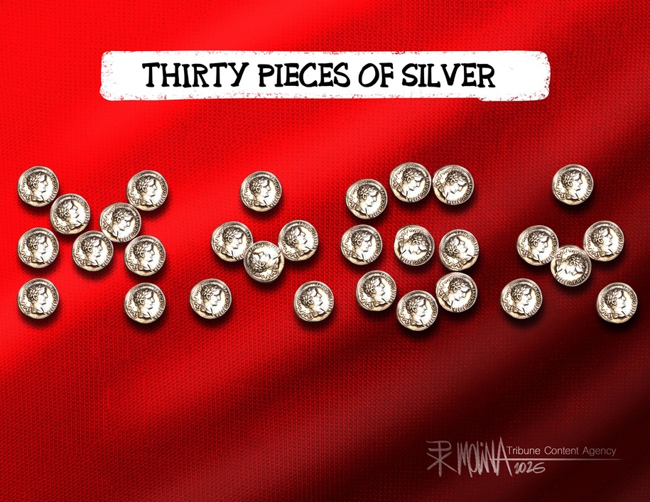 Início Notícias Trinta moedas de prata Notícias Trinta moedas de prata By Elexsandro Araujo - abril 5, 2026 20 0 FacebookTwitterPinterestWhatsApp Um desenho animado de Pedro Molina. Relacionado | A caneca feia do querido líder Trump em breve manchará uma moeda de ouro gigante Fuente