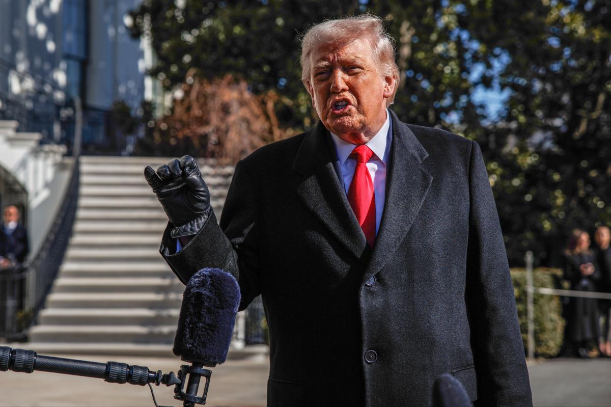 O presidente Donald Trump fala com repórteres fora da Casa Branca.