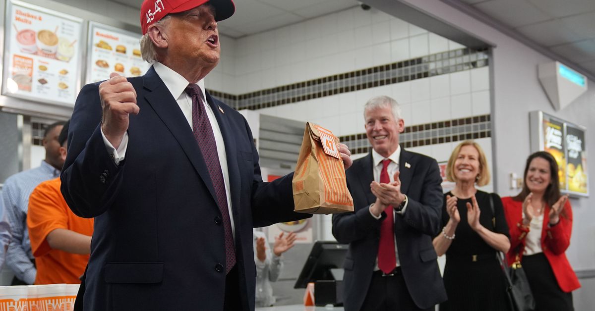 O presidente Donald Trump visita um restaurante Whataburger em Corpus Christi, Texas, (AP)