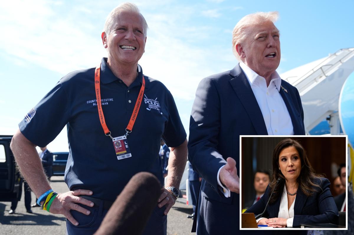 O presidente Donald Trump apoiou o executivo do condado de Nassau, Bruce Blakeman, para governador de Nova York no sábado, um dia depois de a deputada Elise Stefanik (R-NY) anunciar sua impressionante retirada da disputa.