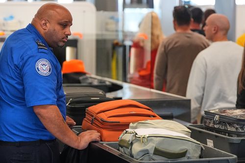 Um agente da Administração de Segurança de Transporte trabalha em um posto de verificação de segurança no Aeroporto Internacional de Baltimore/Washington International Thurgood Marshall durante o desligamento. (AP)