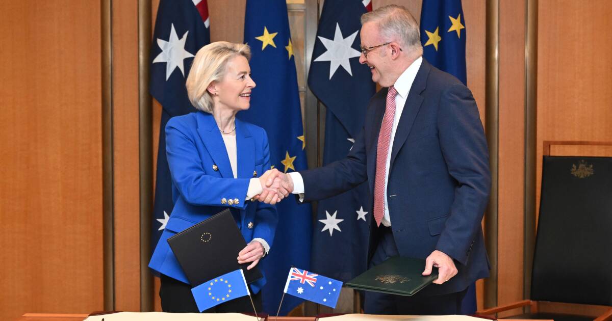 Ao abrigo do acordo comercial, a Austrália garantiu uma quota anual isenta de tarifas de 30.600 toneladas de peso de carcaça de carne bovina ao longo dos próximos 10 anos, fixada em 10.200 toneladas durante os primeiros cinco anos, e 25.000 toneladas de carne de ovino e caprino no mercado europeu – um aumento significativo em relação aos acordos existentes, mas muito aquém das 50.000 toneladas e 67.000 toneladas, respectivamente, procuradas pela indústria.