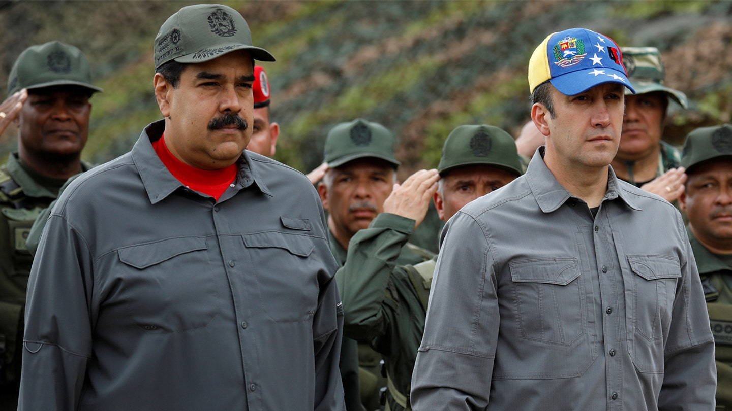 O presidente da Venezuela, Nicolás Maduro, o vice-presidente da Venezuela, Tareck El Aissami, e Cilia Flores participam de um exercício militar na base militar Fuerte Tiuna, em Caracas, em 24 de fevereiro de 2018. (Reuters)