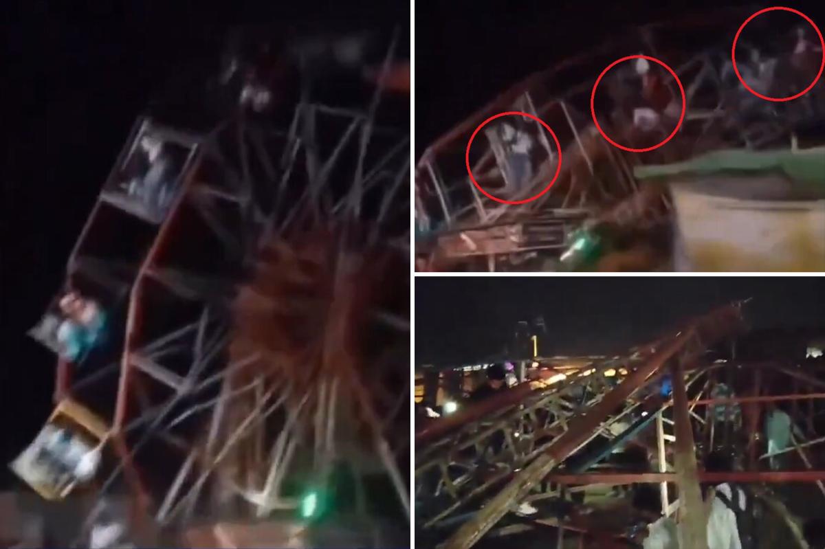 Um vídeo chocante mostra uma roda gigante sobrecarregada desabando repentinamente em uma feira na Índia, deixando dezenas de pessoas presas sob os destroços.