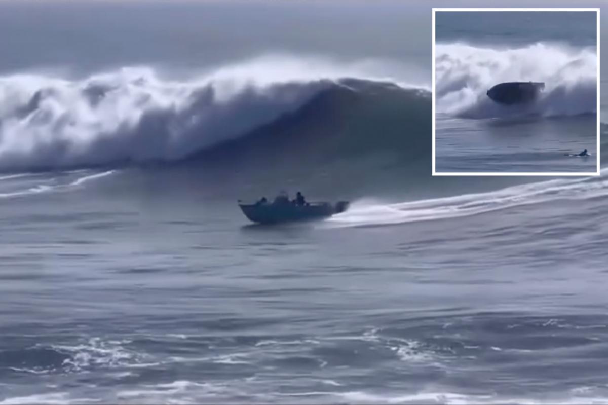 O momento assustador foi capturado em vídeo por um espectador que testemunhou o barco se movendo em direção à costa quando de repente virou direto para as ondas gigantes que se aproximavam. Embora inicialmente tenha permanecido em pé, o barco rapidamente foi engolfado, capotando e jogando a família na água, incluindo quatro crianças.