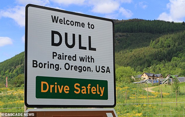 A pequena vila de Dull em Perthshire está geminada com Boring, Oregon, nos EUA – e também Bland em Nova Gales do Sul, Austrália