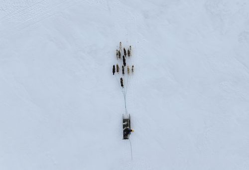 Os seus últimos comentários parecem reforçar o seu apelo à aquisição total da Gronelândia, que reiterou durante uma entrevista ao O jornal New York Times publicado na semana passada.Uma vista aérea de cães de trenó puxando um trenó enquanto um pescador corre diariamente até um local de pesca em Ilulissat, na Groenlândia, em março do ano passado. (Getty)