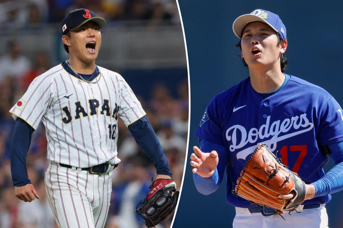 O arremessador do Dia de Abertura dos Dodgers, Yoshinobu Yamamoto, que também lançou nesta primavera para o Team Japan no WBC, se preparou para a temporada regular da MLB na sexta-feira. GettyImages