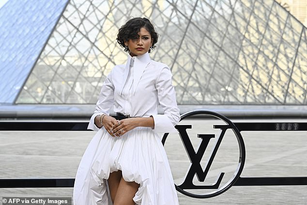 Zendaya exibiu uma 'aliança de casamento' dourada enquanto liderava as estrelas que chegavam ao desfile da Louis Vuitton na Paris Fashion Week na terça-feira