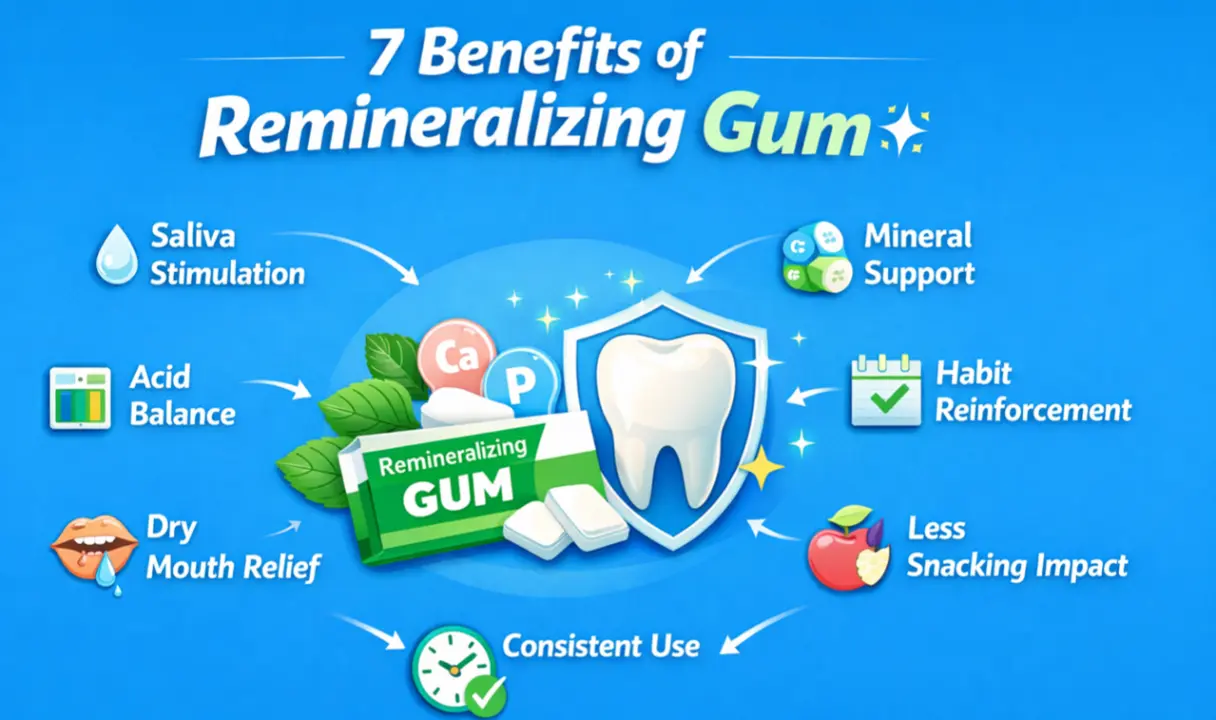 A goma remineralizante tornou-se parte de muitas rotinas diárias de cuidados orais, especialmente para pessoas que procuram proteger o esmalte entre as sessões de escovagem. Usada corretamente, a goma remineralizante pode apoiar hábitos consistentes que são importantes para a saúde dentária a longo prazo. Esta lista explica em que ajuda a goma remineralizante, onde muitas vezes surge a confusão e como são as expectativas realistas.