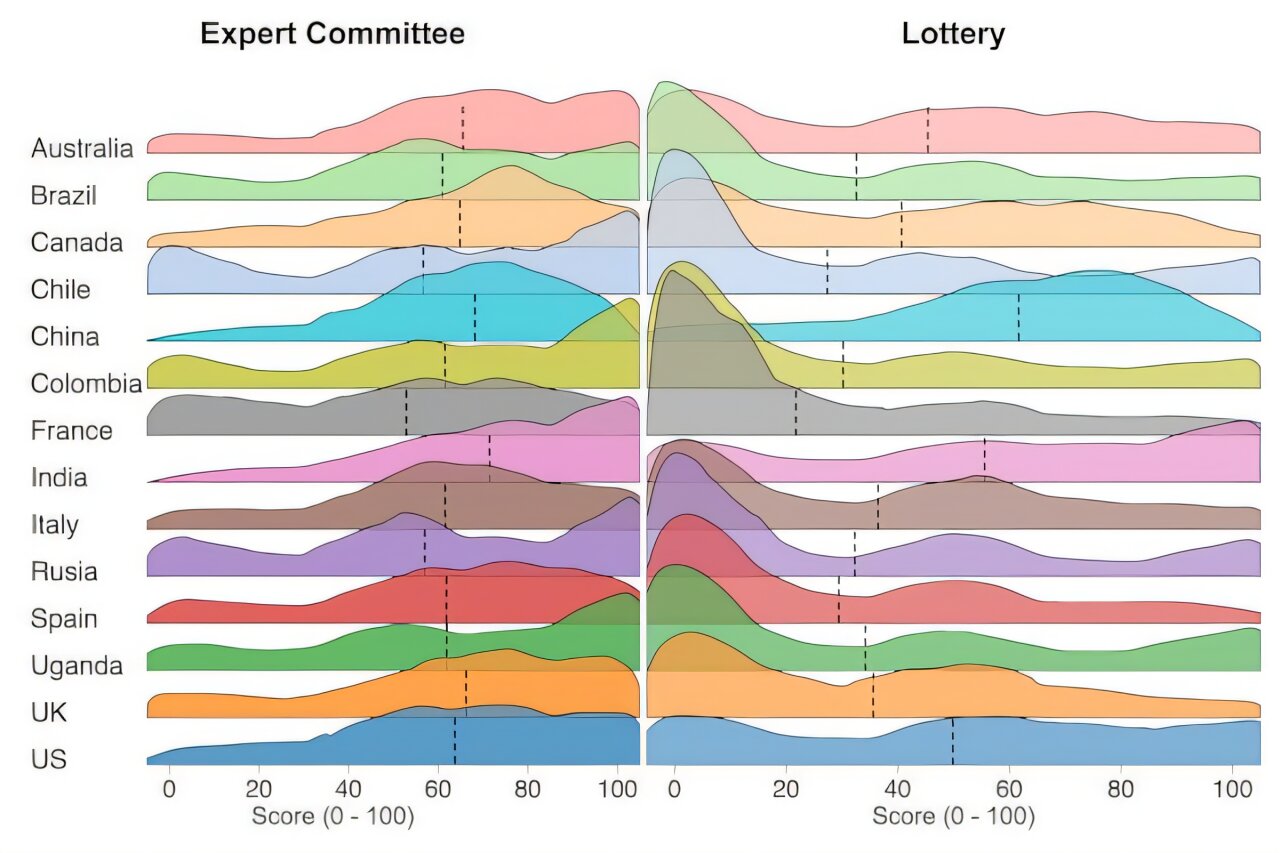 Nosso estudo recente envolvendo mais de 15.000 pessoas em 14 países descobriu que o público recomendou a apropriação por conselhos médicos experientes em jogos de loteria para injeções limitadas de COVID.