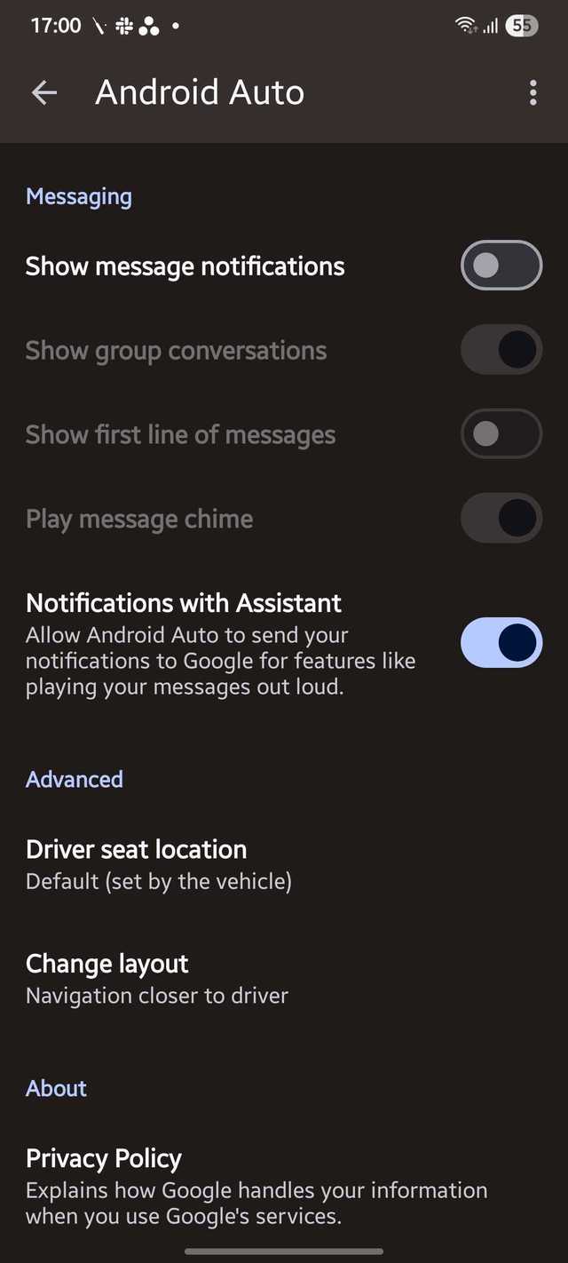 Quando ambas as opções estão desativadas, o Android Auto não mostra notificações, nem de um indivíduo nem de grupo, ajudando você a manter o foco.