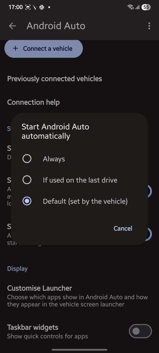 Definir Inicie o Android Auto automaticamente esse Sempre.