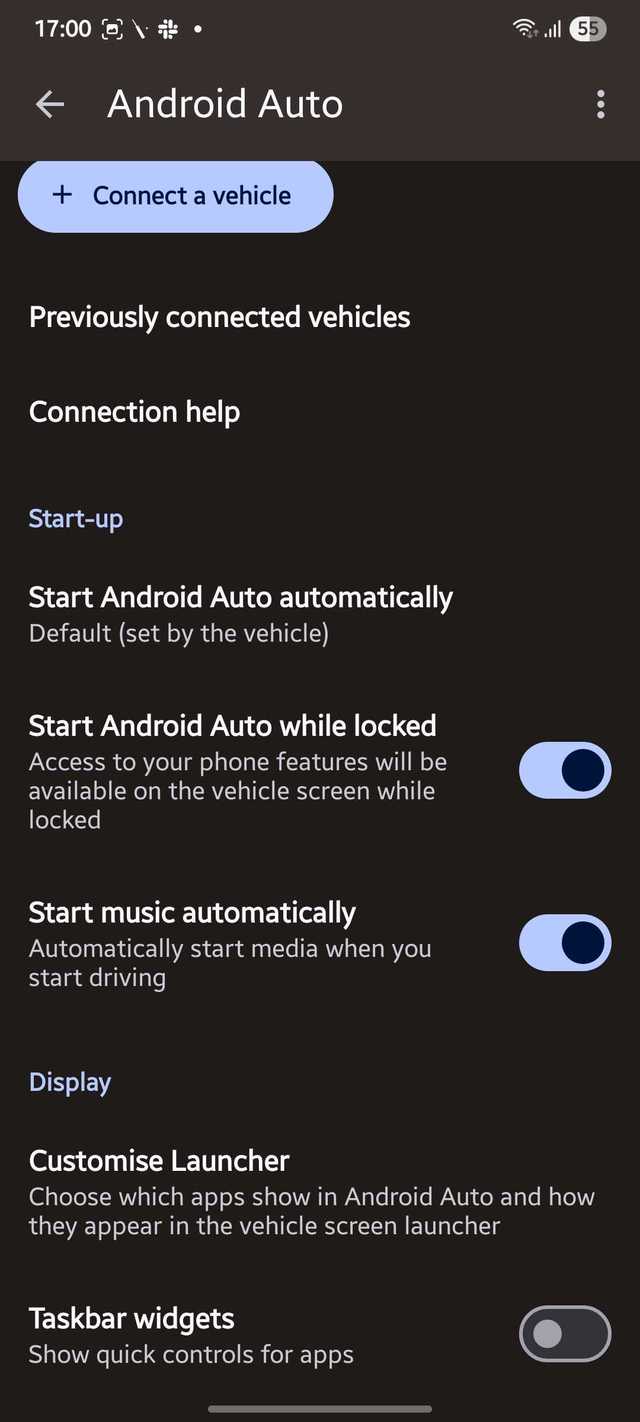 Além disso, você precisa permitir que o Android Auto seja iniciado mesmo quando o telefone estiver bloqueado. O Inicie o Android Auto enquanto estiver bloqueado a alternância está disponível na seção Inicialização das configurações do Android Auto.