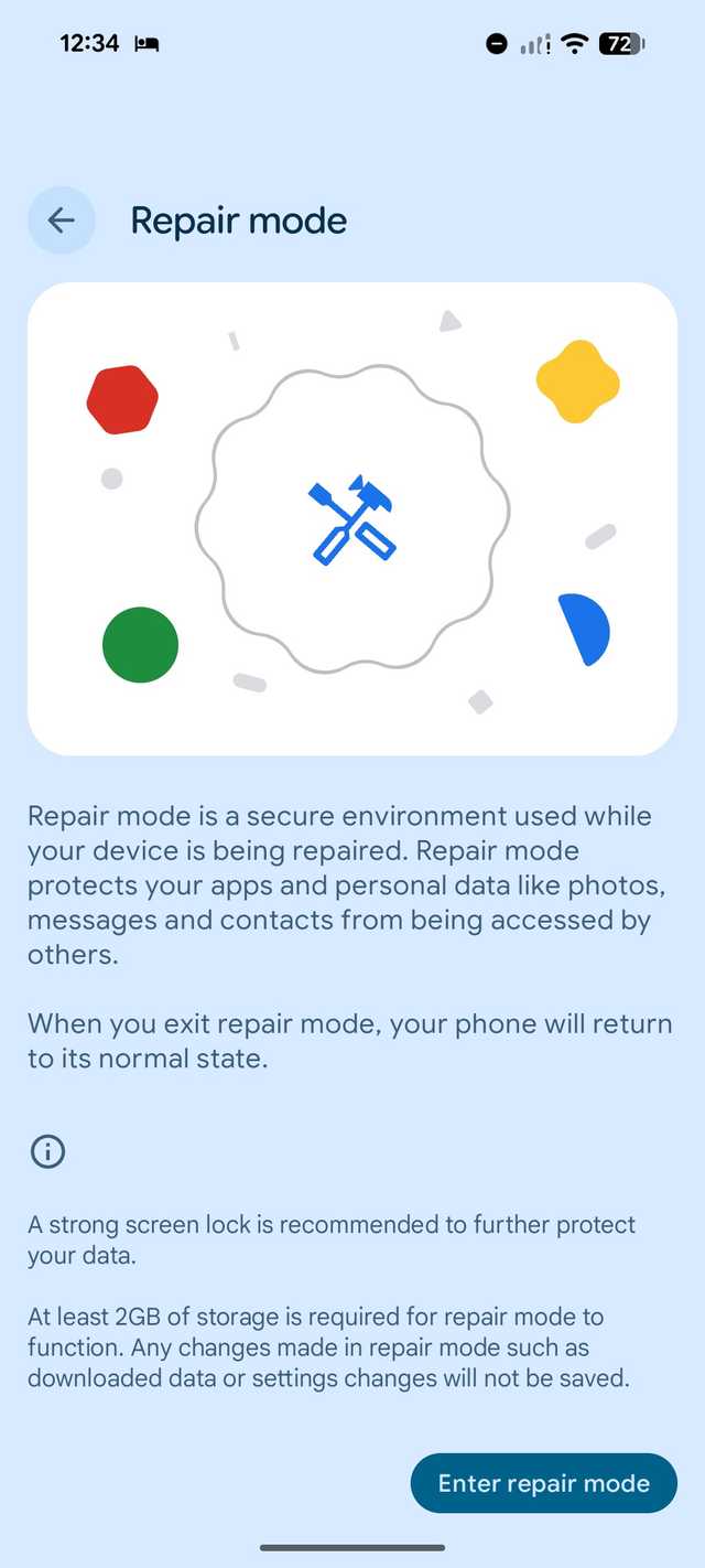 Outro ajuste na minha lista – e relativamente novo que eu gostaria que todos os smartphones tivessem anos atrás – é o modo de reparo em dispositivos Pixel.