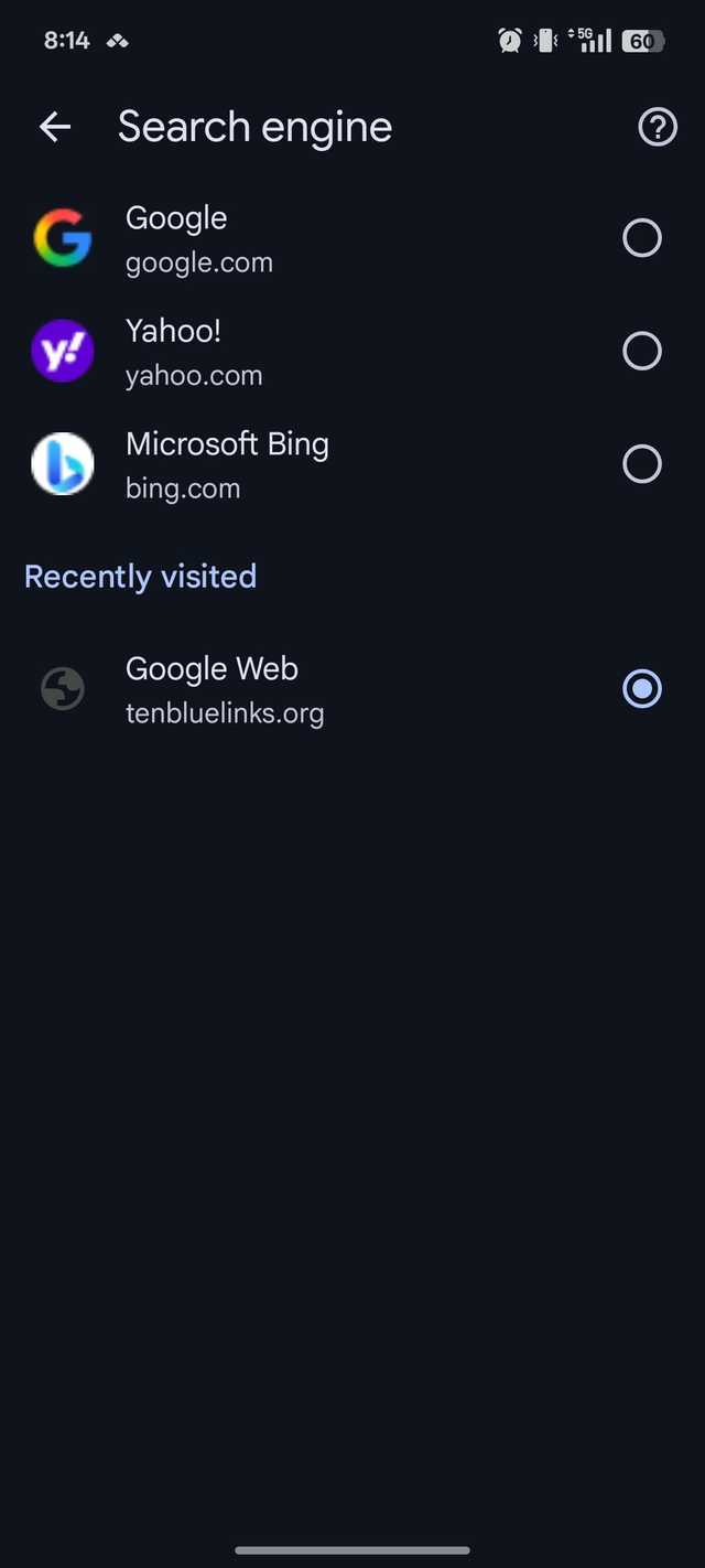 Pode ser necessário redesenhar este tratamento às vezes. O Chrome não permite que você inclua completamente um mecanismo de pesquisa on-line totalmente novo em seu celular.