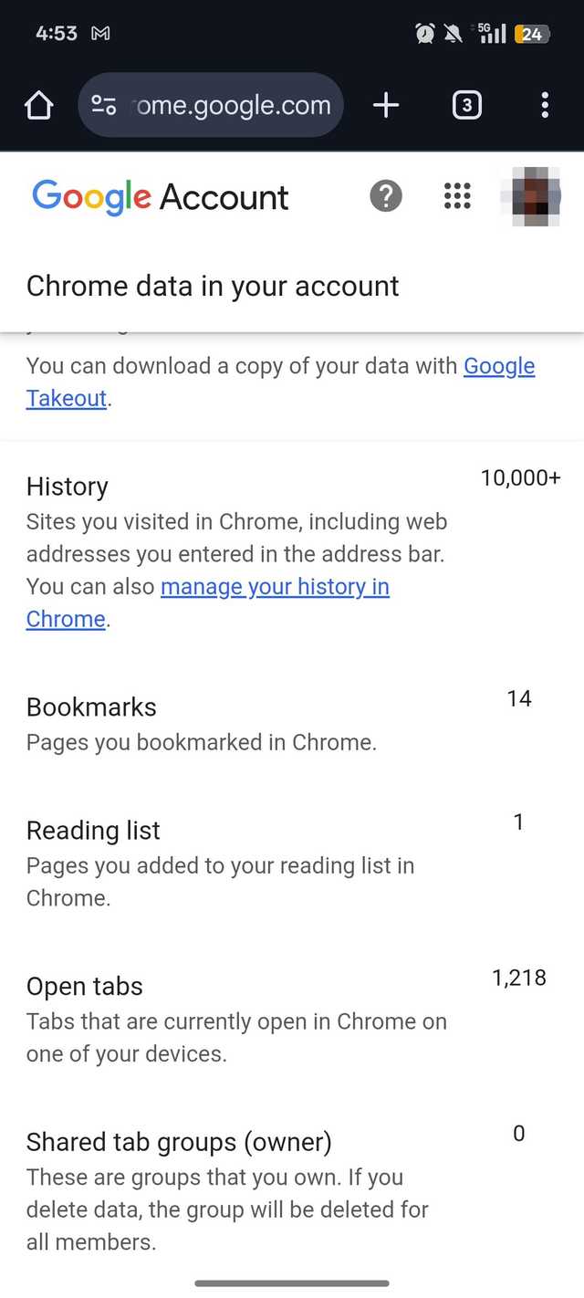 . Comprompendei as informações da minha conta do Google para eliminar essas guias.
