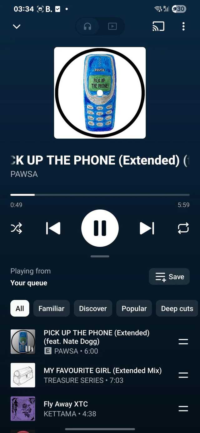 Outra mudança importante aqui é o posicionamento do carrossel. Agora ele aparece abaixo da música e do nome do artista, enquanto um redesenho anterior o posicionou na parte inferior da tela, logo abaixo da barra de progresso. Falando nisso, o YouTube Music também remove o indicador de reprodução da barra de progresso como parte dessa reformulação, com a barra ficando um pouco mais espessa conforme você passa por uma música.