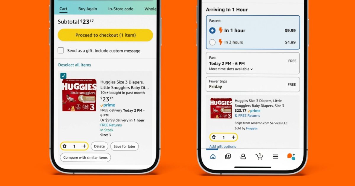A Amazon afirma que a entrega em 1 hora está disponível agora em “centenas de cidades e vilas nos EUA”, enquanto a entrega em 3 horas é oferecida em “mais de 2.000 cidades e vilas”. Ela planeja expandir as opções de entrega mais rápida para mais áreas nos próximos meses.