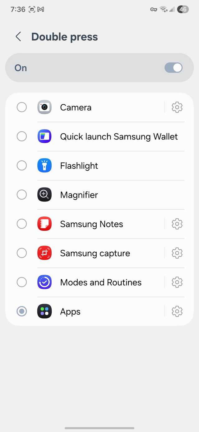 - . Estabeleça-o para abrir a seleção de alimentos poderosos. Você pode liberar o Samsung Pocketbook ou qualquer outro aplicativo de terceiros com um toque duplo.