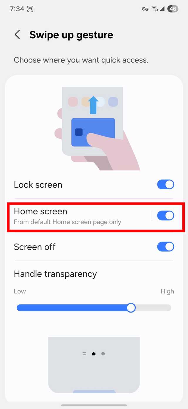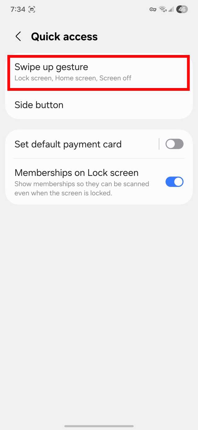 - . Torneira Acesso rápido e escolha Gesto de deslizar para cima.