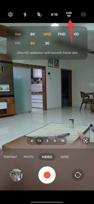- . Torneira resolução de vídeo em cima e escolha Ultra HD a 60 fps.