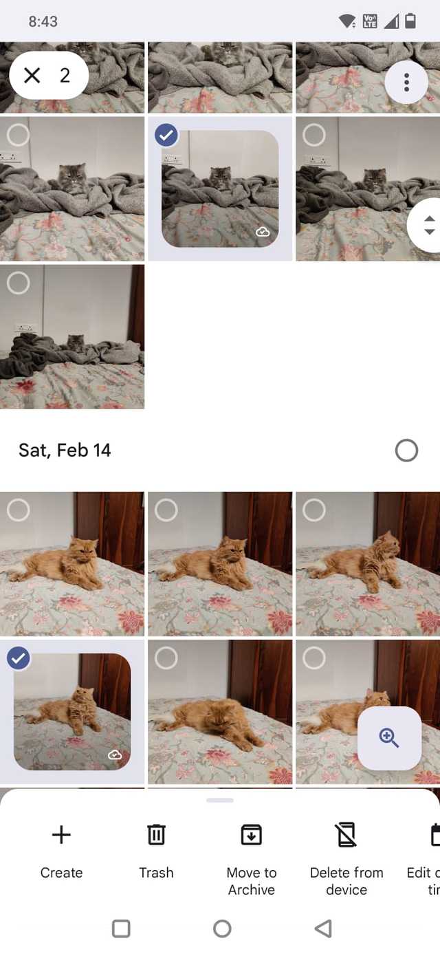 Você também pode excluir várias fotos de uma vez. Quando você seleciona várias fotos, o Excluir do dispositivo opção aparece na parte inferior da tela.