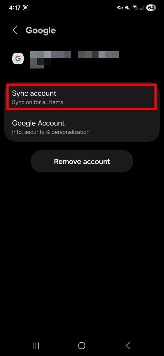 Selecione sua conta do Google na lista que aparece e toque em Sincronizar conta.