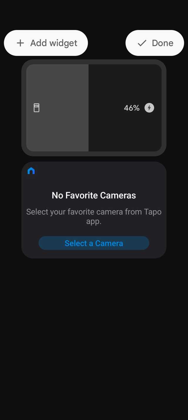 Para adicionar um novo widget, toque em uma área vazia e selecione Adicionar widget no canto superior esquerdo.