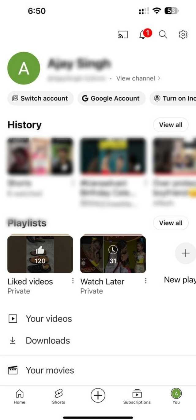 Toque no seu foto do perfil ou inicial da conta no canto inferior direito.