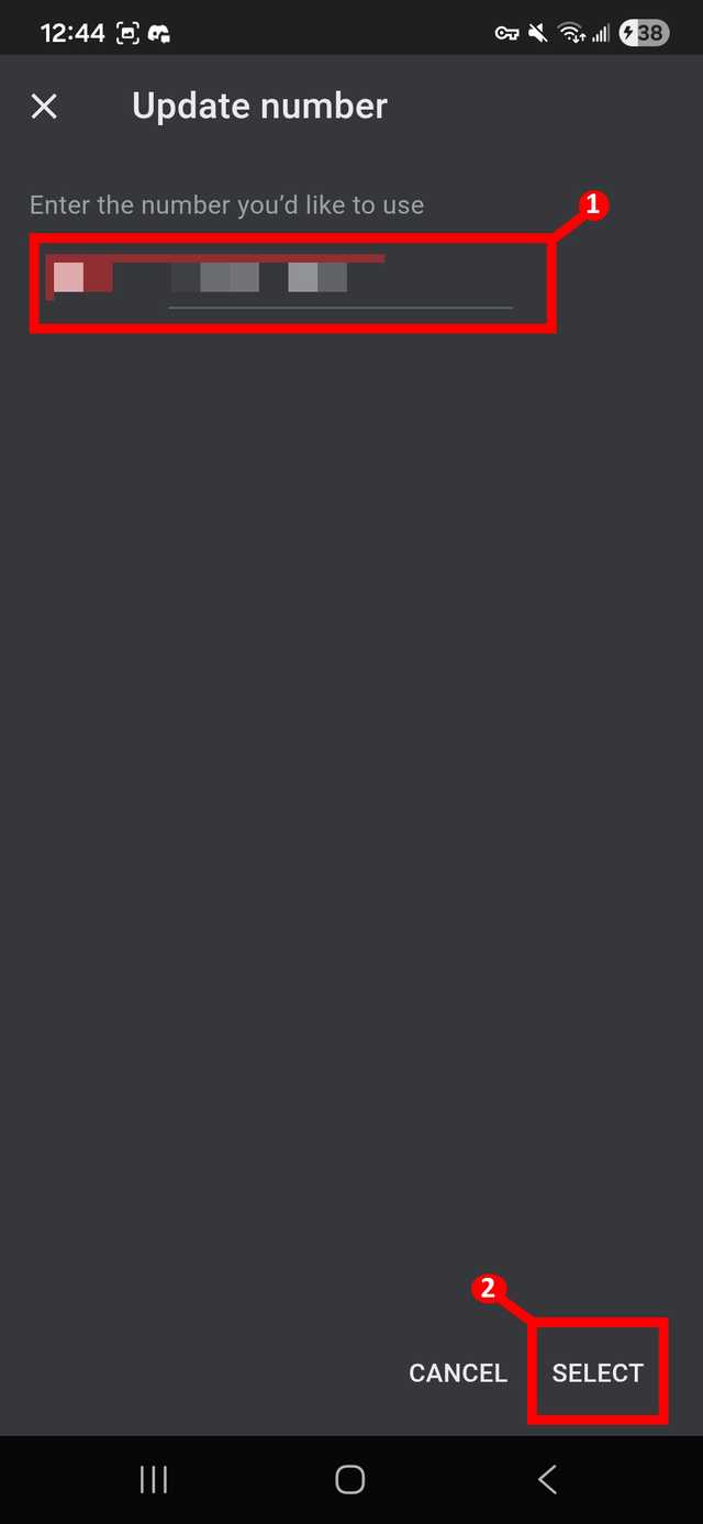 Tocar Selecione. O número de telefone conectado à sua conta do Google é atualizado.
