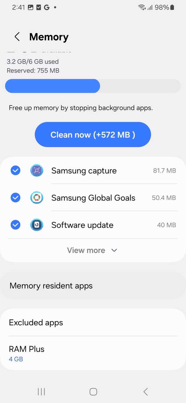 Você pode encontrar o recurso RAM Plus da Samsung se possuir um dispositivo de baixo custo. Este recurso aloca alguns Gigabytes de armazenamento interno como memória virtual para melhorar a multitarefa.