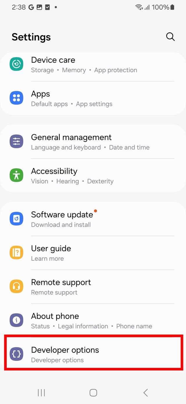 Depois o modo de desenvolvedor está ativado, você pode acessar o Opções do desenvolvedor menu nas configurações do seu dispositivo.
