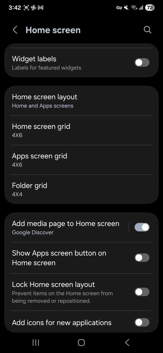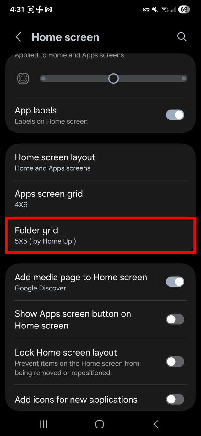 Se desejar alterar quantos aplicativos cabem em uma pasta, retorne às configurações da tela inicial e toque em Grade de pastase escolha outra opção.