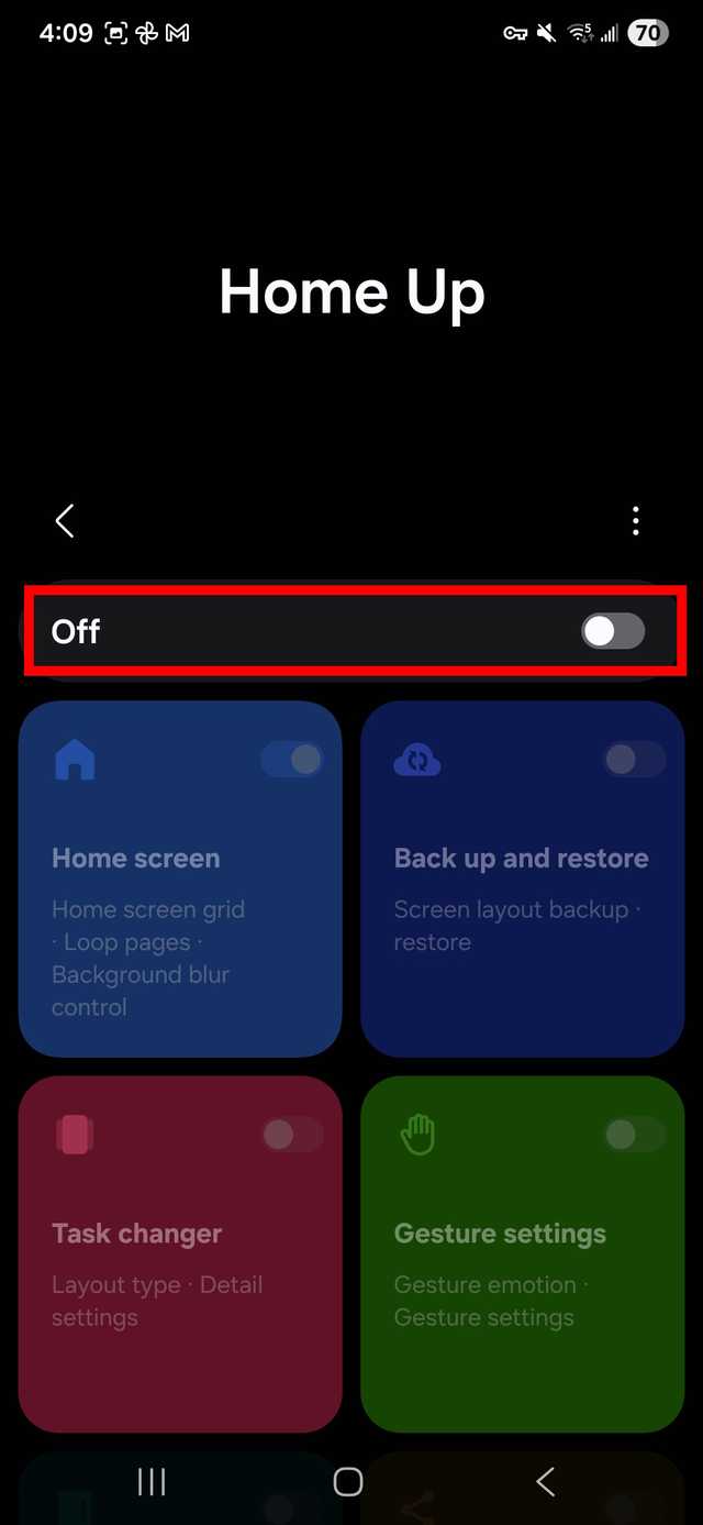 Observe que se você não vir o módulo Home Up, é provável que ele não seja compatível com a versão atual do One UI e você precisará aguardar a atualização da Samsung.