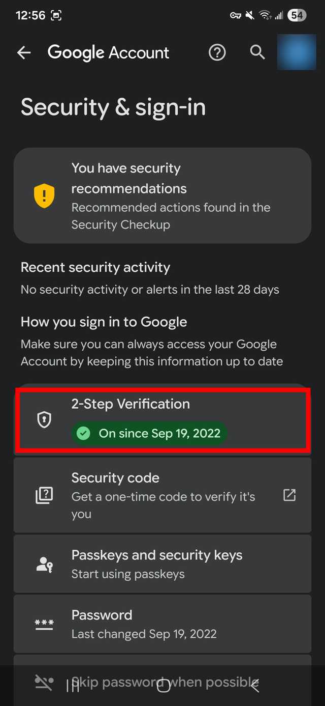 No Como você faz login no Google seção, toque em Verificação em duas etapas.