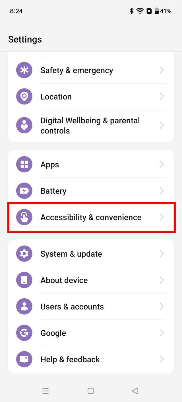 2. Tocar Acessibilidade e conveniência.