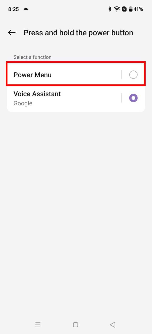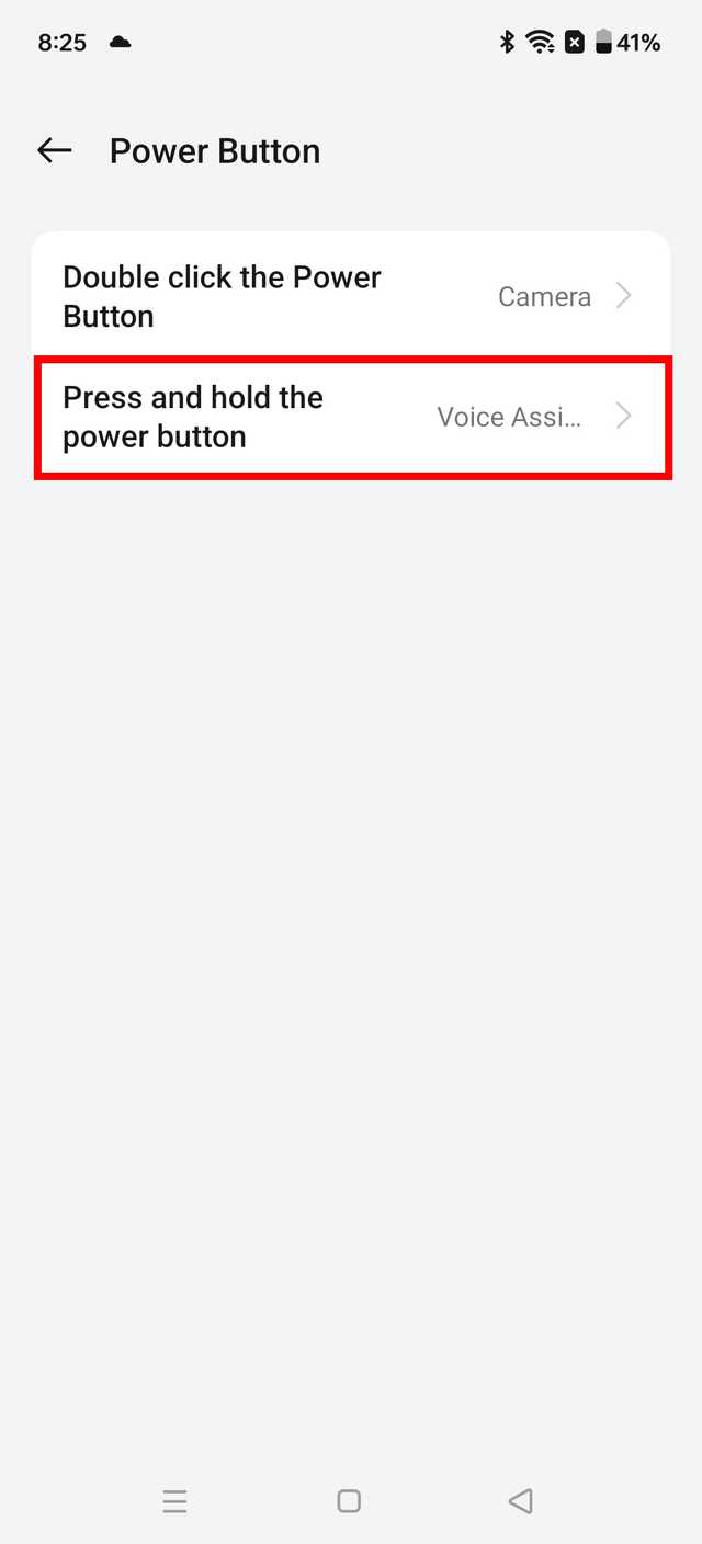 4. Tocar Imprensa e segure o botão liga / desliga > Menu de energia. Isso substituirá seu assistente digital no menu liga/desliga quando você mantém pressionado o botão liga/desliga.