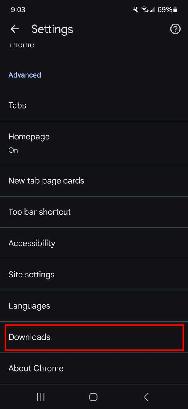 Se você estiver baixando arquivos de um navegador móvel, poderá visualizar o local do download visitando as configurações do navegador.