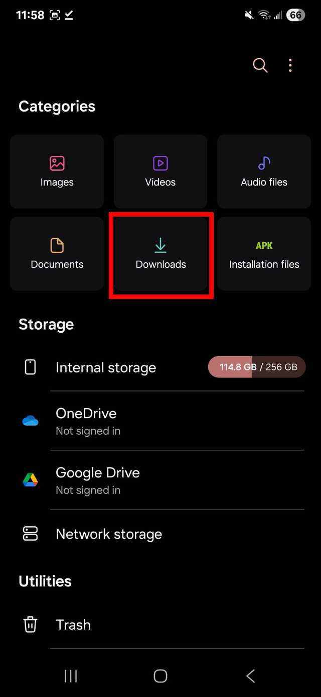 Encontre arquivos baixados no aplicativo Arquivos ou Meus Arquivos do seu Android
