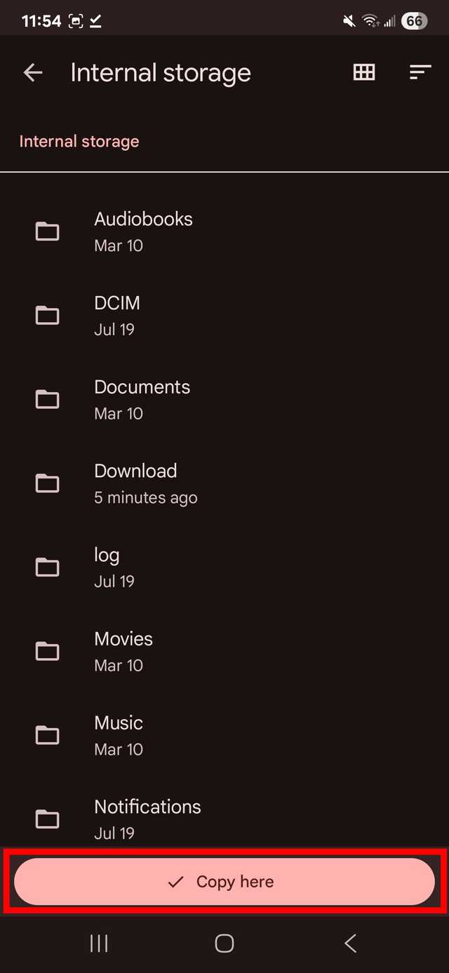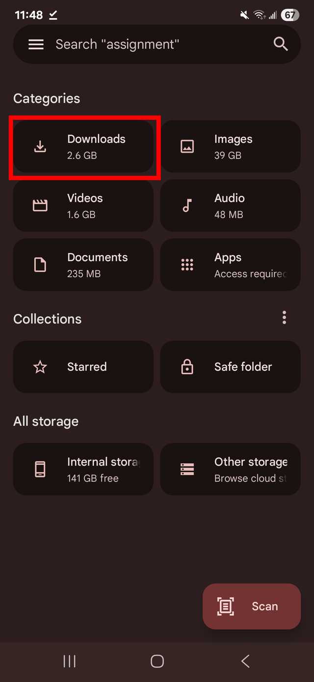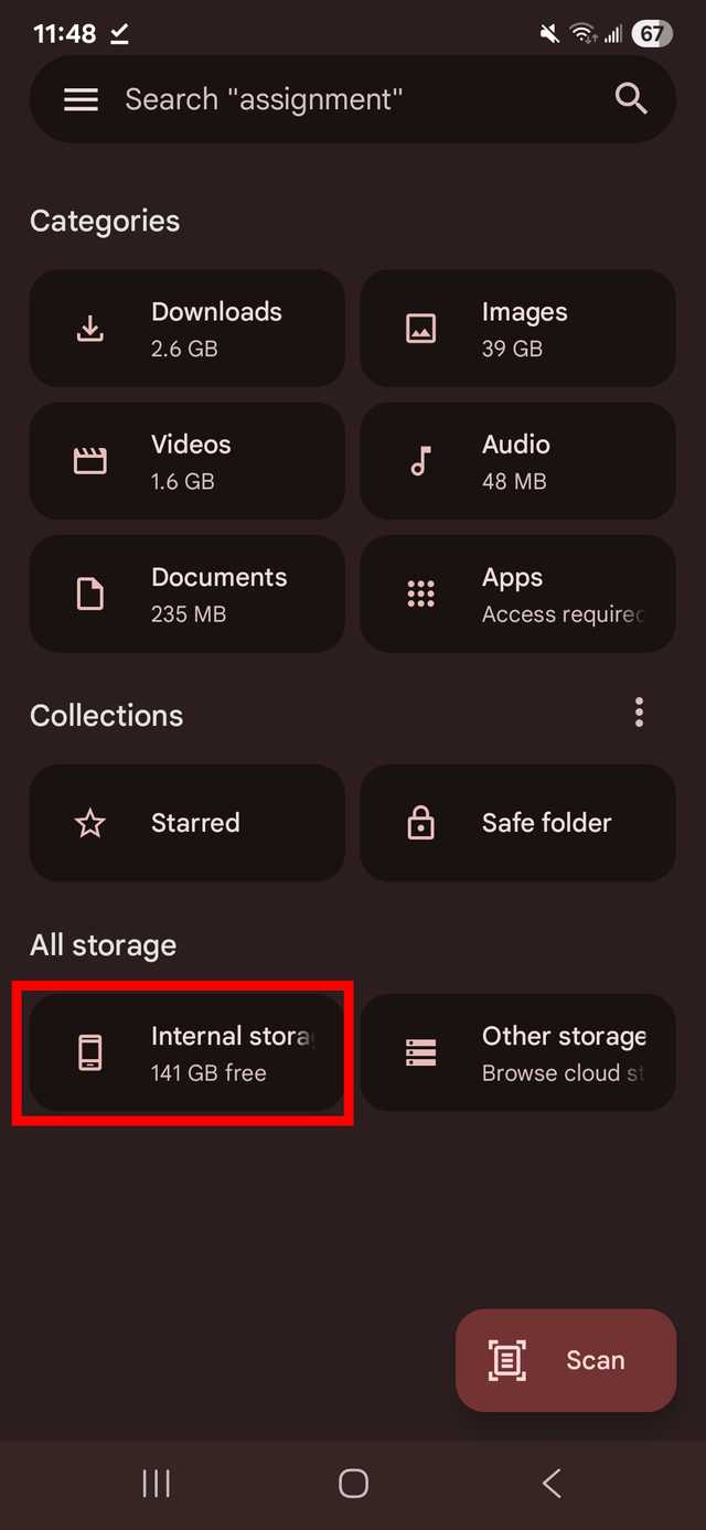 Pesquise manualmente os arquivos baixados no armazenamento interno